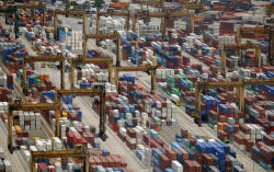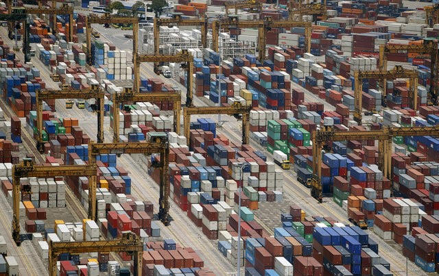 Containers are stacked up at PSA's Tanjong Pagar container terminal