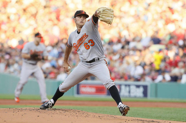 Tyler Wilson (63) throws a pitch against the Boston Red Sox in the