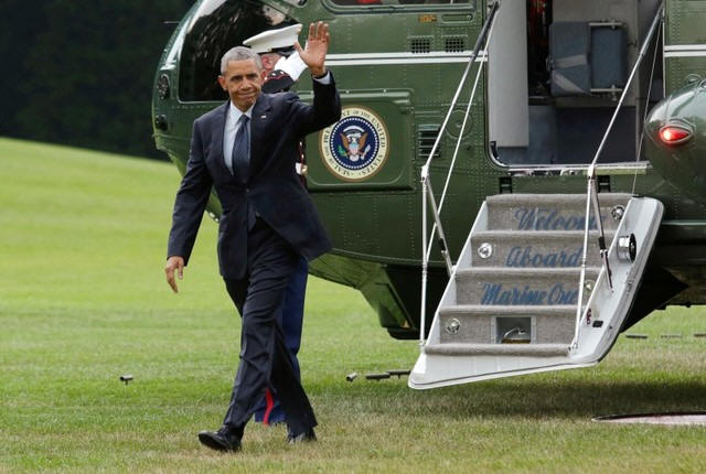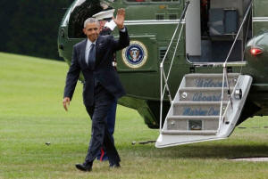 President Barack Obama waves as he walks on the South Lawn of the