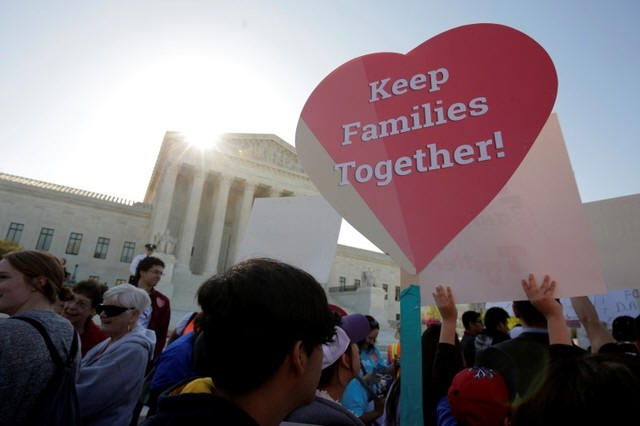 Immigration activists rally outside the U.S. Supreme Court as