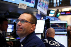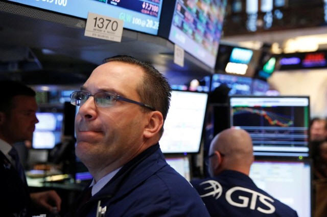 Traders work on the floor of the New York Stock Exchange shortly
