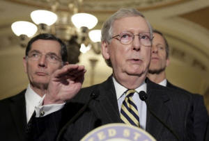 Senate Majority Leader Mitch McConnell (R-KY) speaks during a news
