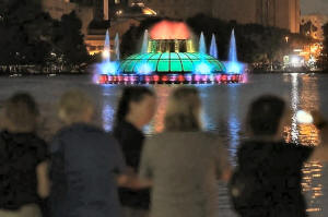 Lake Enola fountain is lit in rainbow colors following last week's