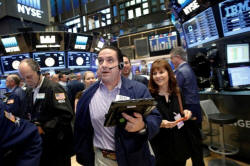 Traders work on the floor of the New York Stock Exchange (NYSE) in