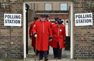 Chelsea Pensioners leave after voting in the EU referendum, at a
