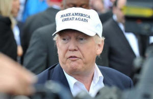 a red baseball cap emblazoned with "Make America Hate Again," a play