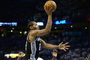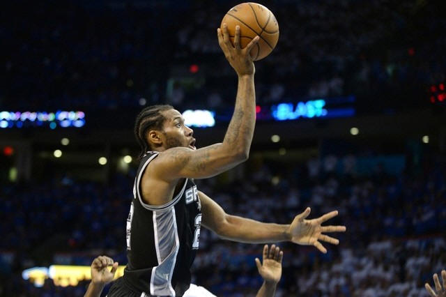 Leonard (2) shoots the ball against the Oklahoma City Thunder during