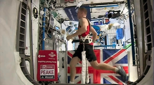 British astronaut Tim Peake runs a marathon while strapped to a