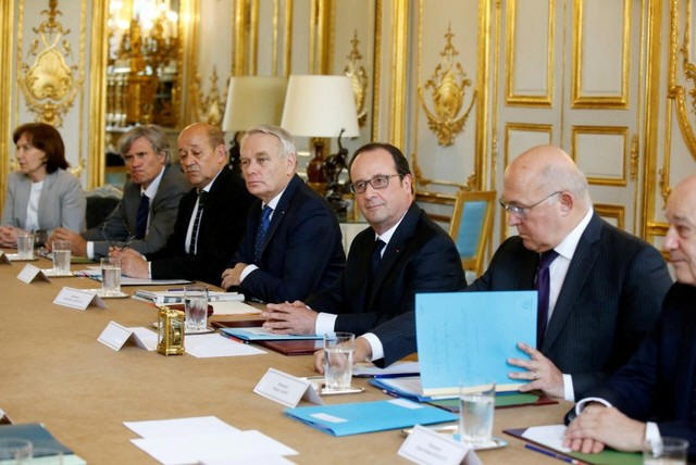 Sapin (2ndR), Foreign Minister Jean-Marc Ayrault (4thL), Defence