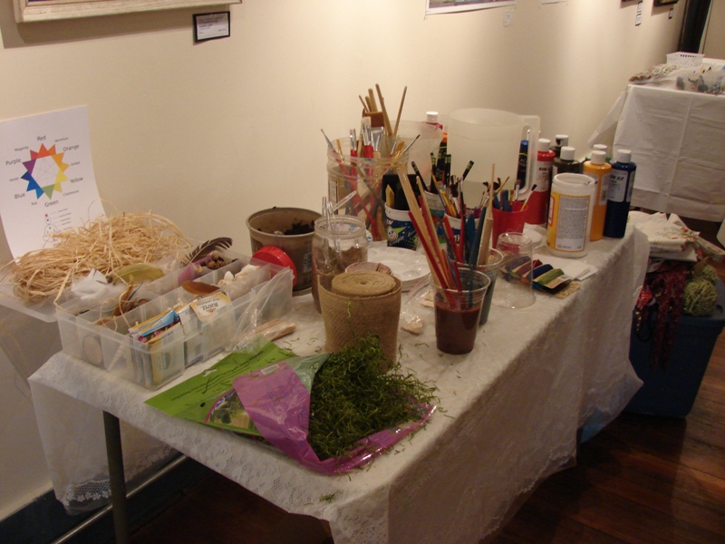 usual supplies for painting, she also provided stones, grass, dirt,