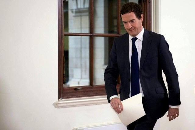 Britain's Chancellor of the Exchequer George Osborne leaves after a