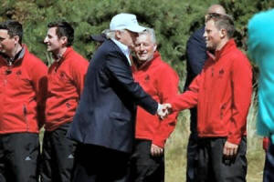 Trump, whose mother was Scottish, was greeted by around a dozen