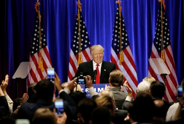 during a campaign event at the Trump Soho Hotel in Manhattan, New