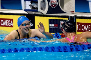 Katie Ledecky and Leah Smith after the women's freestyle 400m final