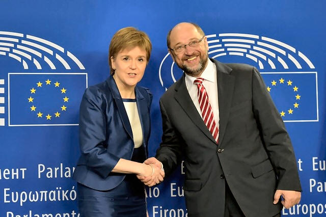 Scotland's First Minister Nicola Sturgeon is welcomed by European