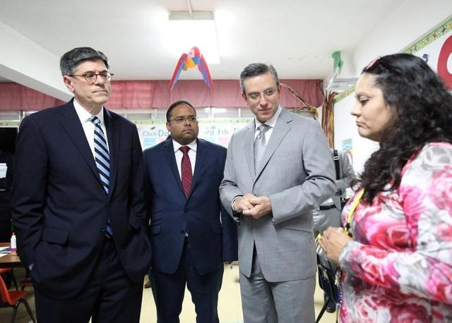Treasury Secretary Jack Lew (L) and Puerto Rico's Governor Alejandro