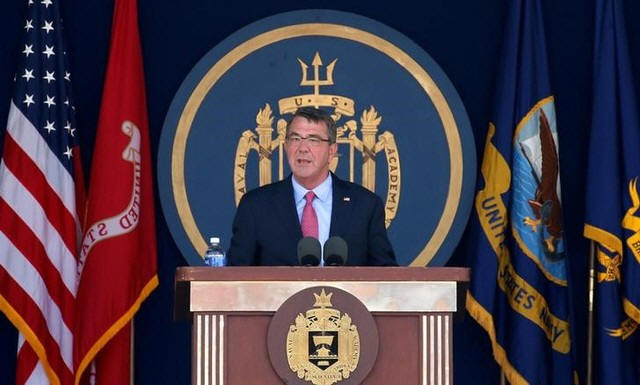 Secretary of Defense Ash Carter speaks during the graduation and