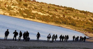 straits, Turkish police mounted a raid on a beach opposite Lesbos.