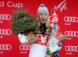 postponed from Saturday, to overtake Lindsey Vonn and lead the