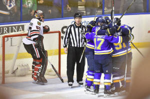 The Blues tied the score with a power-play goal with 11:14 remaining