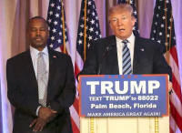 Republican U.S. presidential candidate Donald Trump (R) speaks