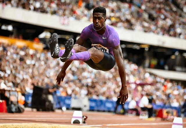 USA's Marquis Dendy in action during the Men's Long Jump.