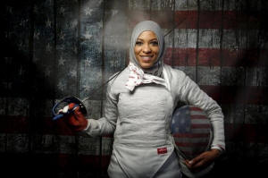 Olympian to represent the United States wearing a hijab. Muhammad