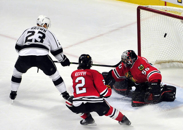 Chicago goaltender Corey Crawford turned aside 20 of 25 shots in the