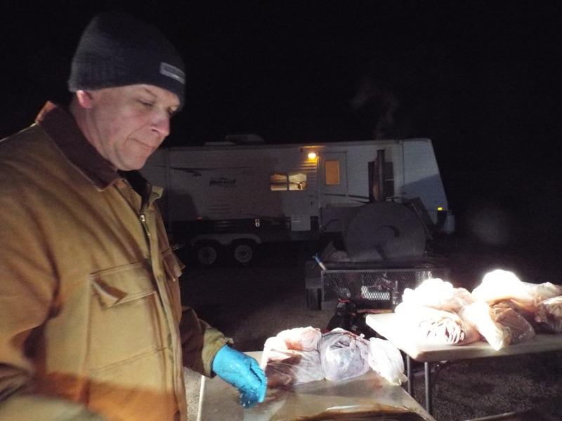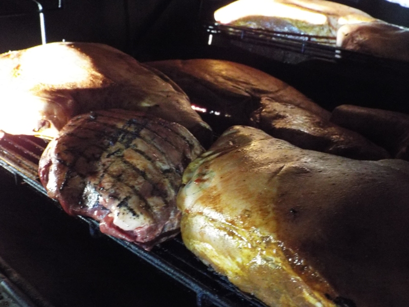 transferred roasts to outdoor smokers to begin that slow 'for