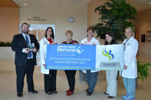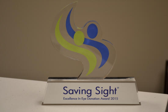 [March 18, 2016]  LINCOLN - On Monday, Abraham Lincoln Memorial Hospital was awarded Saving Sight’s 2015 Excellence in Eye Donation Award, recognizing the partner hospital for achievements in providing the gift of sight to those needing a transplant last year.