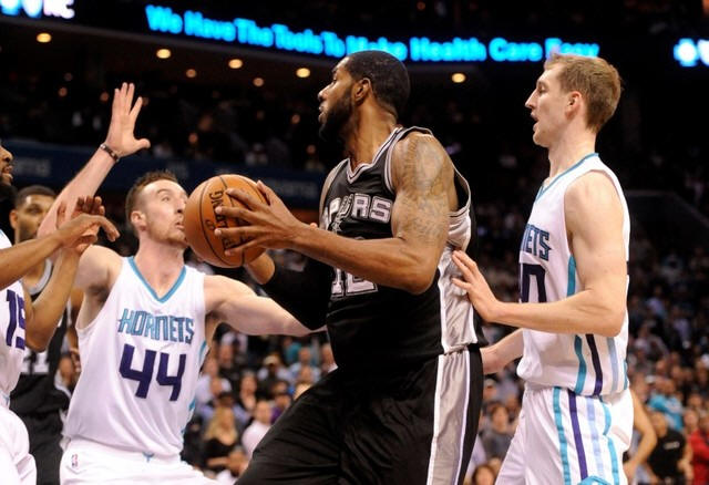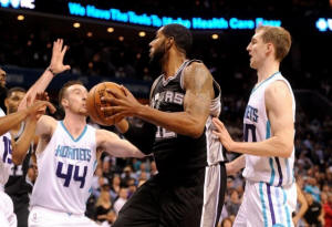 The Spurs led 28-7 after one quarter, limiting the Hornets to 14.3