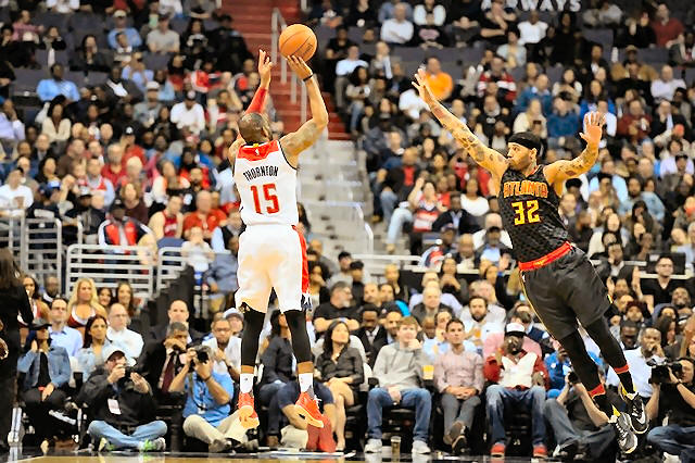 with at least one 3-pointer, scored 15 points and Al Horford had 13.