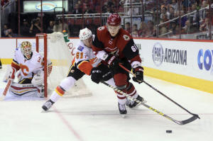 scored a pair of goals for Arizona, which leads the NHL in goals