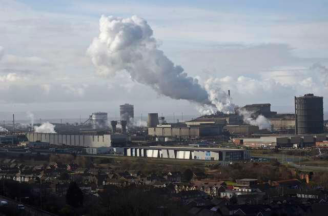 shows the Tata steelworks in the town of Port Talbot, Wales,