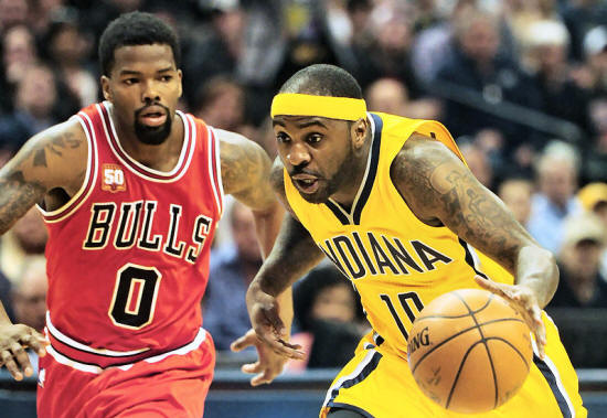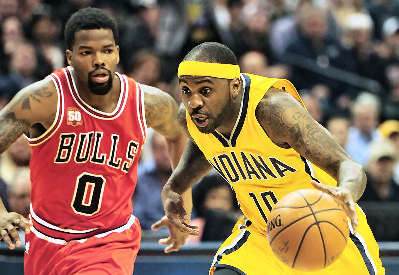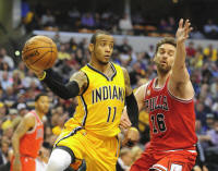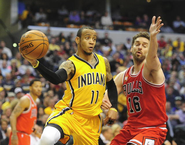 Pacers guard Monta Ellis(11) passes the ball as Chicago Bulls