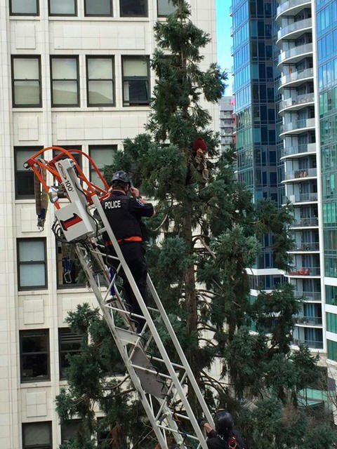 with authorities who tried to cajole him down from the tree,