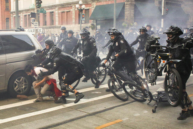 bottles and breaking windows in a downtown neighborhood, the Seattle