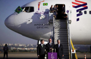 The Olympic flame arrived in Brasilia aboard a TAM jetliner that