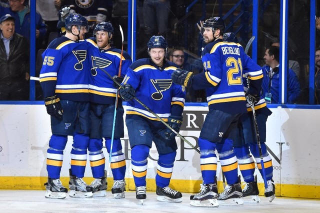 Roussel was called for delay of game. The Blues had 16 shots on goal