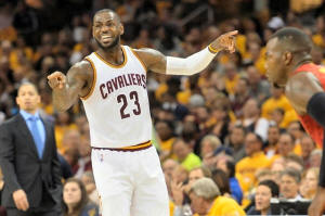 behind his back to shake Hawks guard Kyle Korver, put the Cavs ahead