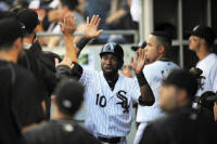 White Sox center fielder Austin Jackson (10) celebrates in the