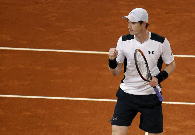 Madrid, Spain - 6/5/16 Murray celebrates winning a point.