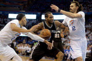 a Thunder turnover led to a Leonard layup and a Spurs 94-89 lead.