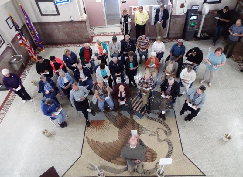 Once again, attendees were seated in the center of the Logan County Courthouse rotunda with chairs arranged over the county seal in mosaic.