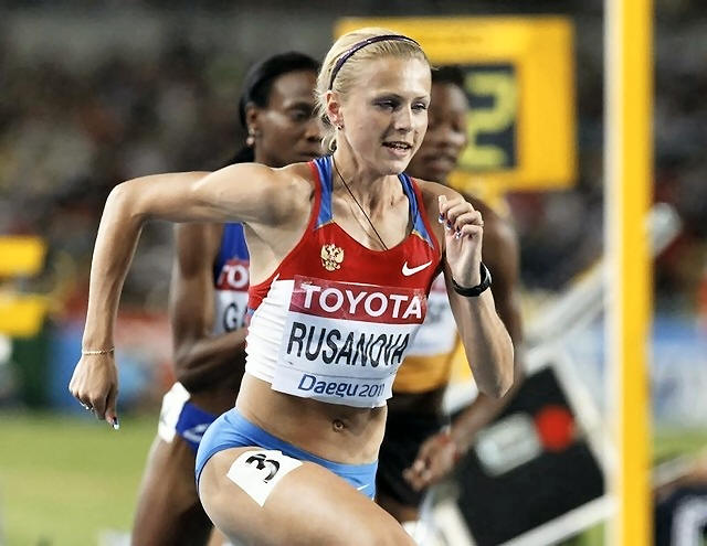 Yuliya Rusanova of Russia competes during the woman's 800 metres