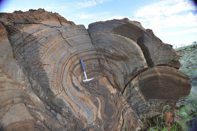 The layers on this 2.7 billion-year-old rock, a stromatolite from