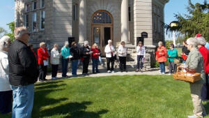 As the courthouse clock struck 12 and the Lincoln College carillon