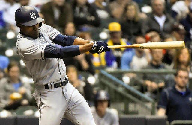Padres left fielder Melvin Upton Jr. (2) drives in a run with a base hit
