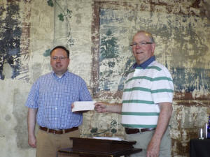 Committee, served as the host and presented the checks.