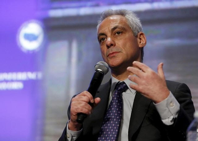 Chicago Mayor Rahm Emanuel participates in a panel discussion on